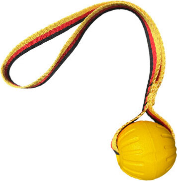 Dankzij het lange, opvallend gekleurde koord (in geel,rood en zwart) kun jij het speeltje gemakkelijk ver weg werpen voor een goede apporteertraining. Bovendien is het koord ook in gras of tussen struiken goed terug te vinden, waardoor jij niet steeds hoeft te zoeken als je hond het even laat liggen.