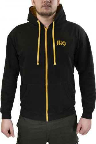 JK9 Jet Black/Gold Full-Zip Hoodie is sportief en perfect voor joggen, hiken en alle soorten buitenactiviteiten, met of zonder hond. Het is gemakkelijk aan en uit te trekken vanwege de rits. Het is gemaakt van 80% katoen en 20% polyester materiaal, wat ademend en comfortabel is. Vanwege het materiaal is deze hooded sweatshirt praktisch, zelfs bij winderig en koud weer. Je kunt je kleine spullen in de zijzakken meenemen. Al onze JK9 Jet Black/Gold Full-Zip Hoodies hebben het JK9-logo, voor- en achterkant.